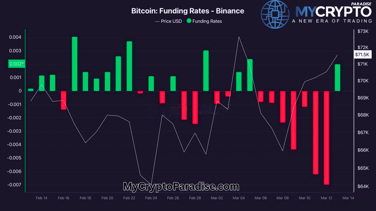 Yello, ParadiseClub Members!😎 On-chain data shows that Bitcoin funding rates turn negative while BTC holds the $70K level. What could be next for the market? Let’s find out: