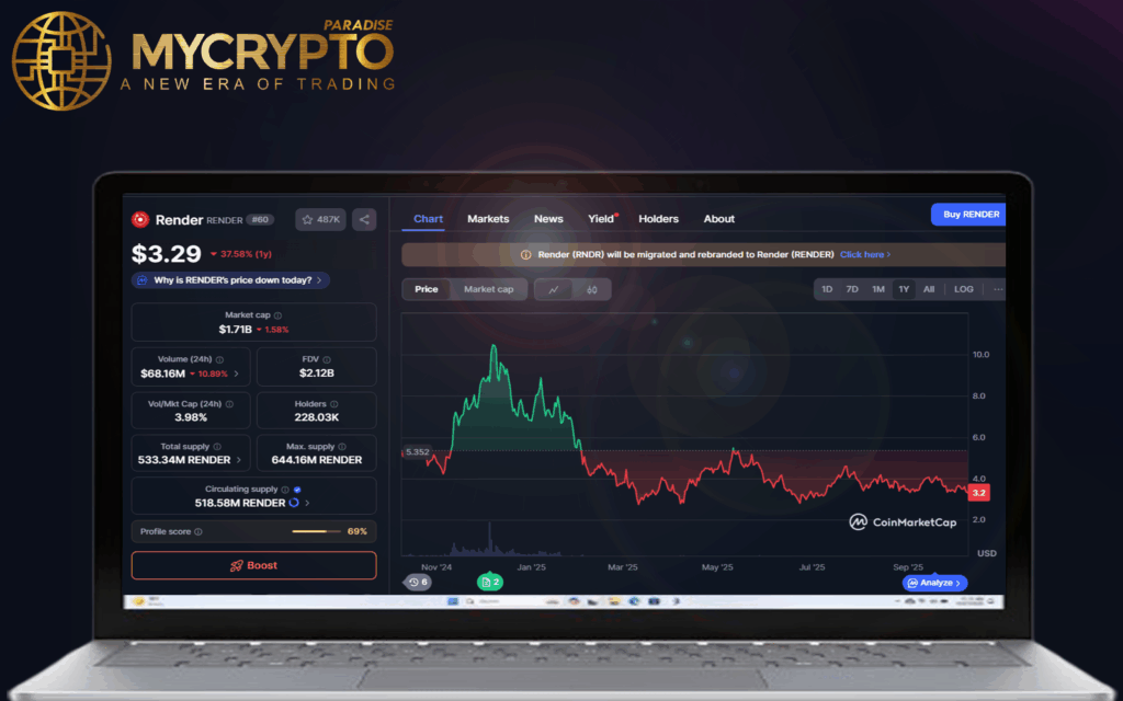 Render Network (RENDER) is a decentralized GPU rendering platform that connects digital artists and AI developers with idle GPU power around the world. Built on the Ethereum blockchain, Render allows creators to process complex 3D, AI, and motion graphics tasks efficiently without relying on centralized cloud providers.